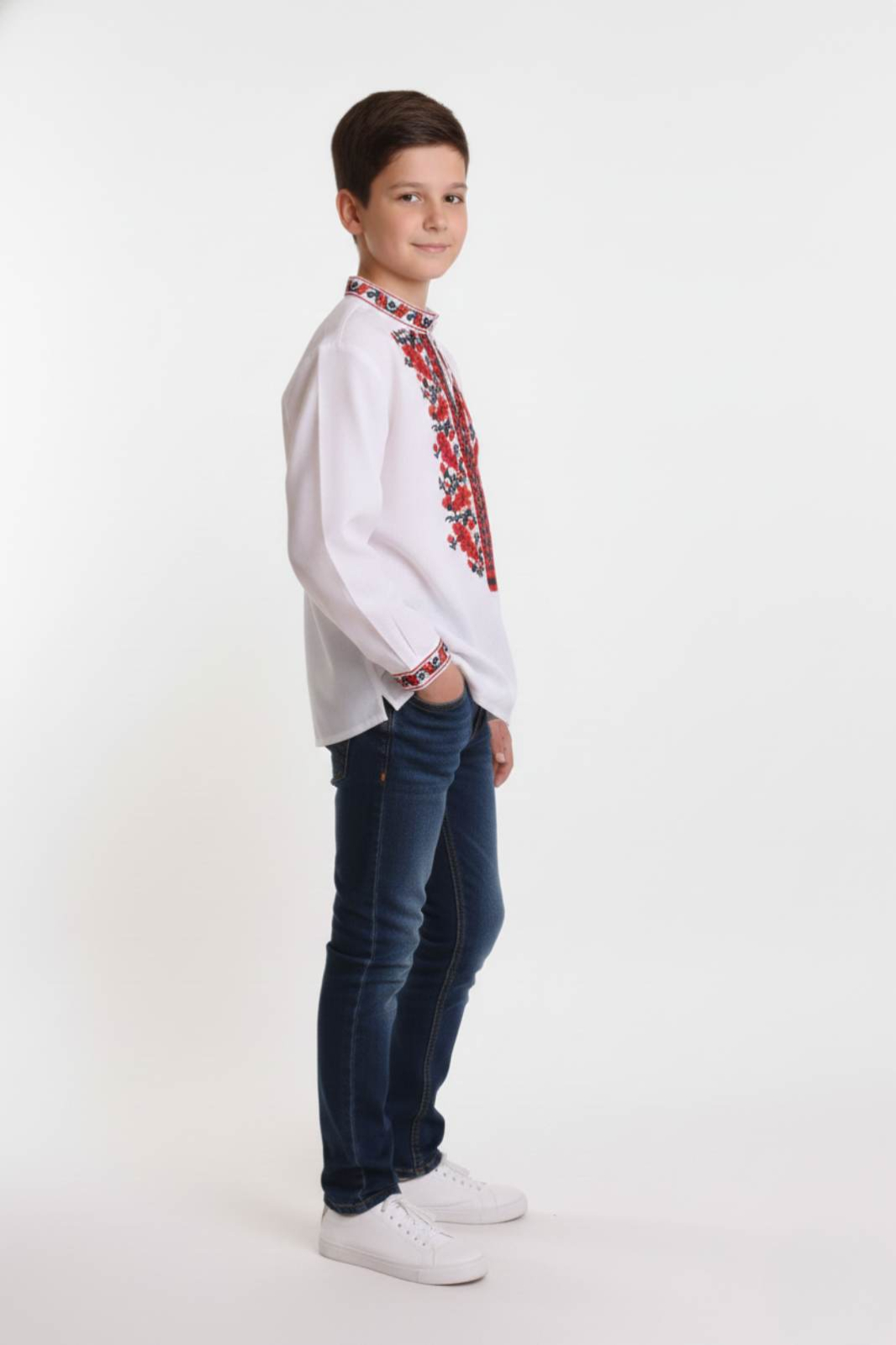 Camasa traditionala de baieti alba cu motiv floral rosu Razvan 02