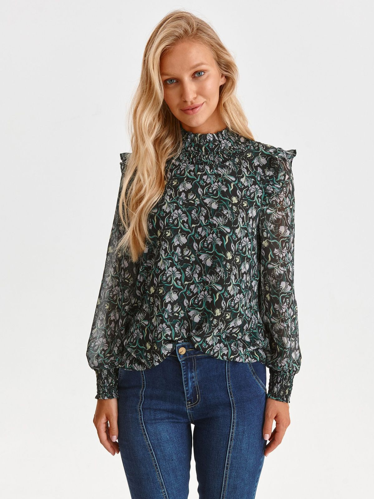 Bluza vaporoasa cu guler creponat. Are maneci lungi, inchidere la spate cu nasture si croi usor cambrat. Acest model de bluza avantajeaza toate tipurile de silueta si poate fi asortat atat cu pantaloni, cat si cu fusta.