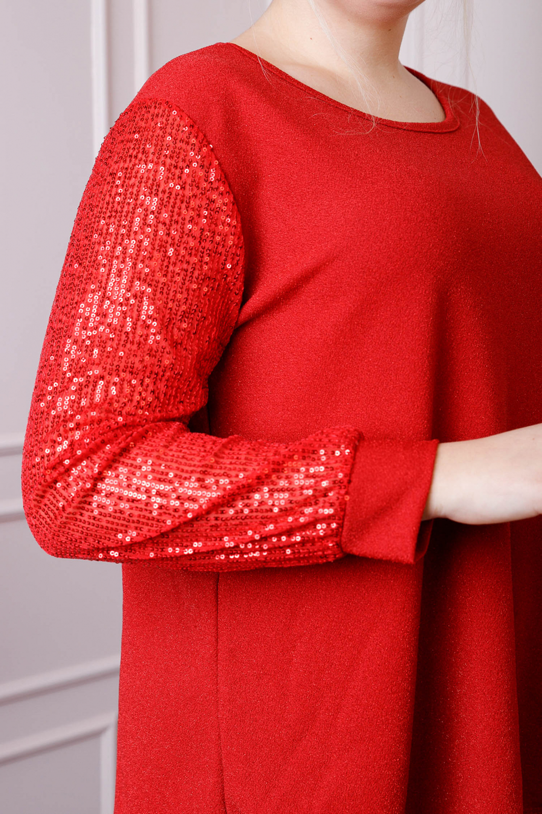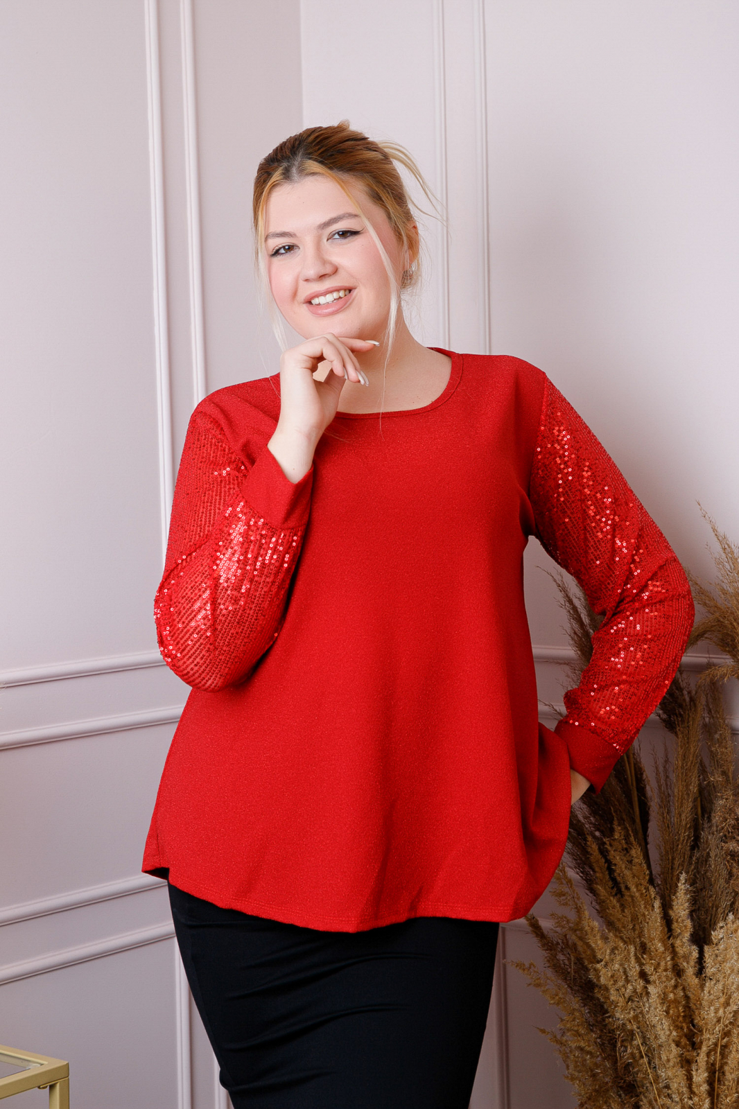 Bluza plus size Chloe cu paiete si fir lame - Rosu
