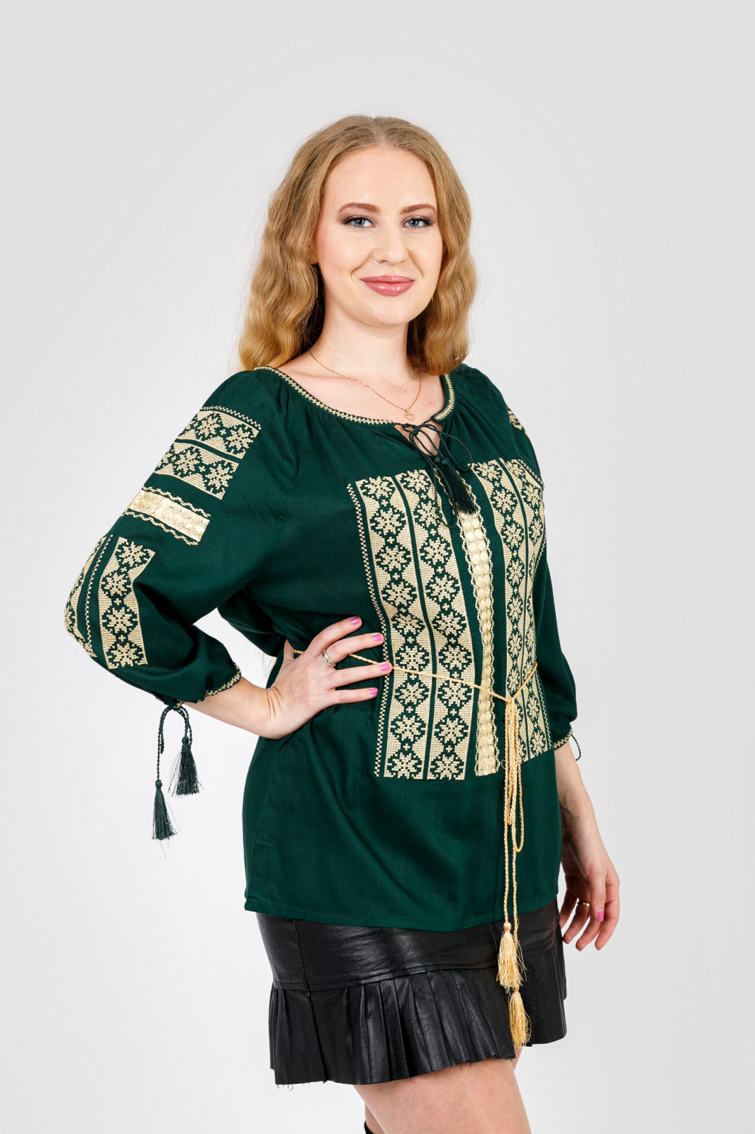 Bluza tip ie verde din viscoza cu maneca 3/4 si motiv auriu