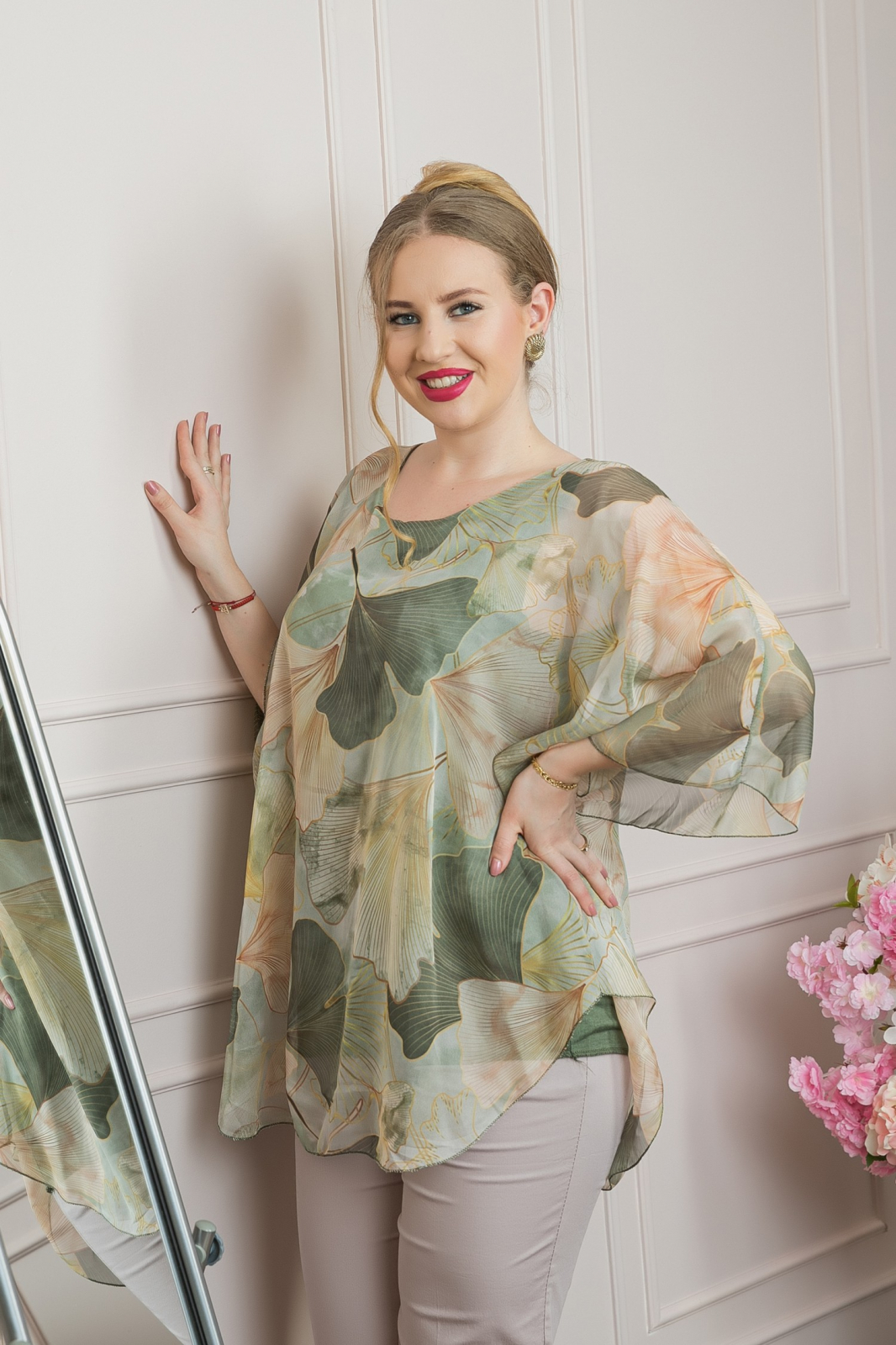 Aceasta bluza verde mint din voal cu imprimeu floral vibrant este alegerea perfecta pentru un look feminin si elegant. Designul usor si fluid, cu maneci largi, avantajeaza orice tip de silueta si mascheaza micile imperfectiuni ale corpului, adaugand un aer sofisticat tinutei. Bluza ofera confort pe tot parcursul zilei, fiind ideala atat pentru ocazii speciale, cat si pentru tinute casual chic. Poate fi asortata cu pantaloni eleganti sau fuste pentru a obtine un look deosebit.
