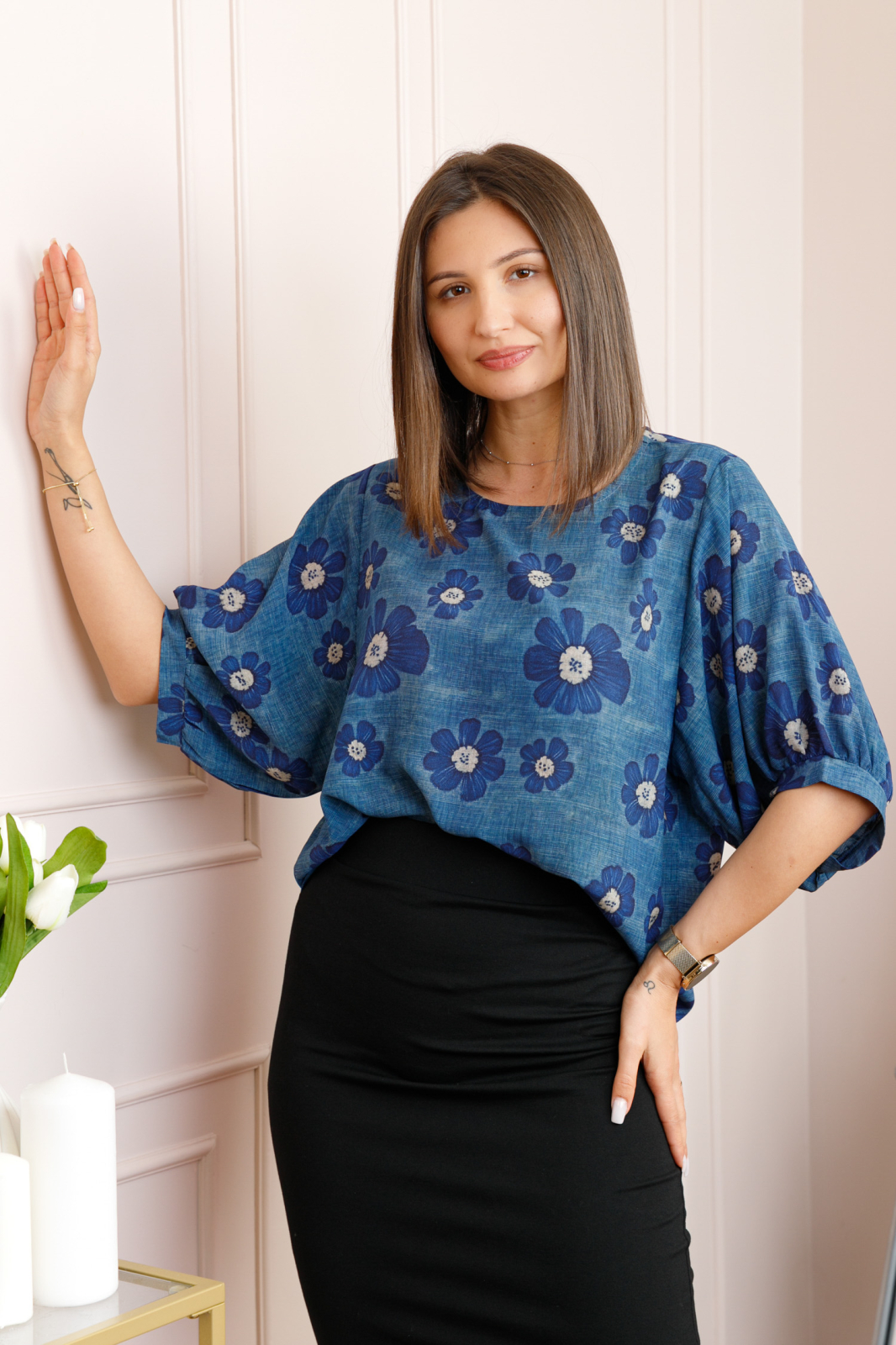 Bluza Harper imbina eleganta naturala cu un design lejer, fiind alegerea ideala pentru tinute feminine si confortabile. Imprimeul cu flori, in nuante de albastru, bleumarin si crem, adauga un aer rafinat si usor de integrat in garderoba de zi cu zi.