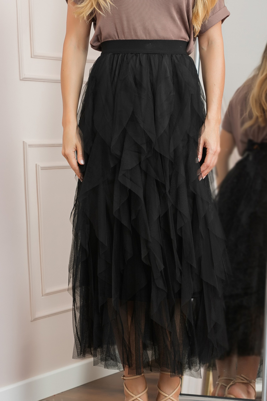 Fabricata din tulle fin si usor, aceasta fusta ofera o miscare fluida si un look delicat. Ideala pentru ocazii speciale sau evenimente formale, fusta este prevazuta cu o banda elastica in talie, asigurand un confort maxim pe durata intregii zile. Poate fi asortata cu un top elegant si pantofi cu toc pentru o tinuta completa.