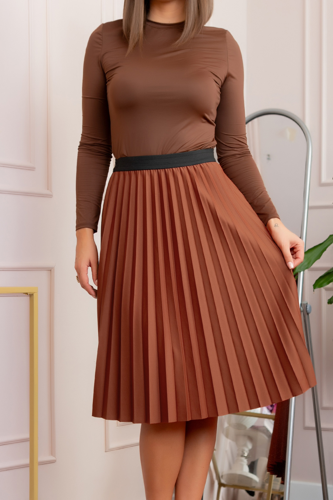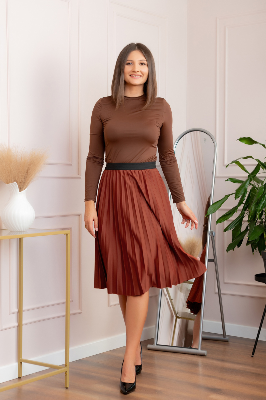 Fusta plisata Luna cu elastic in talie - Caramiziu