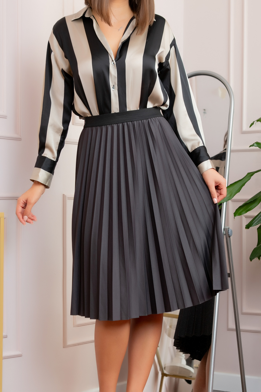Fusta plisata Luna cu elastic in talie - Gri antracit