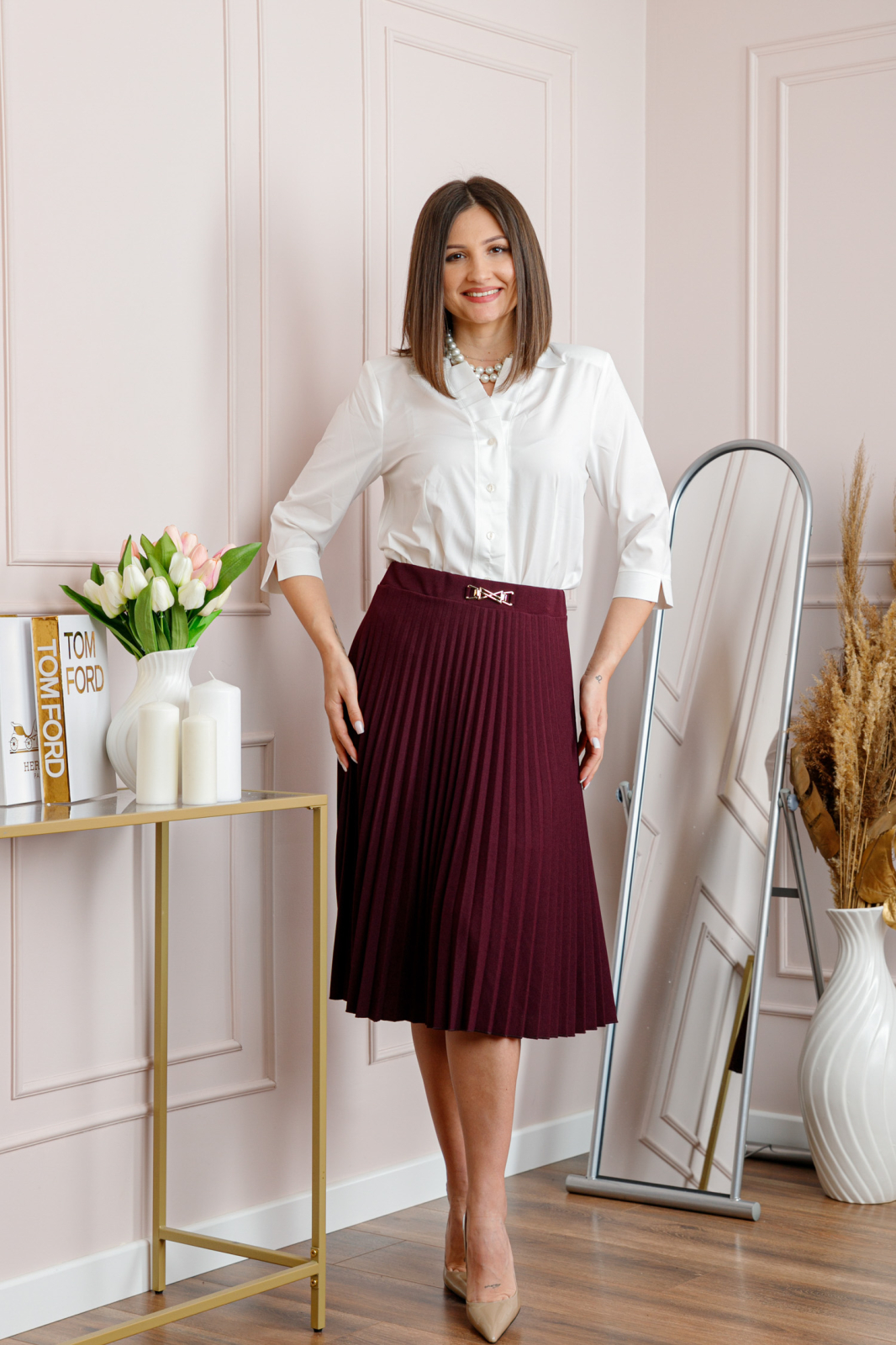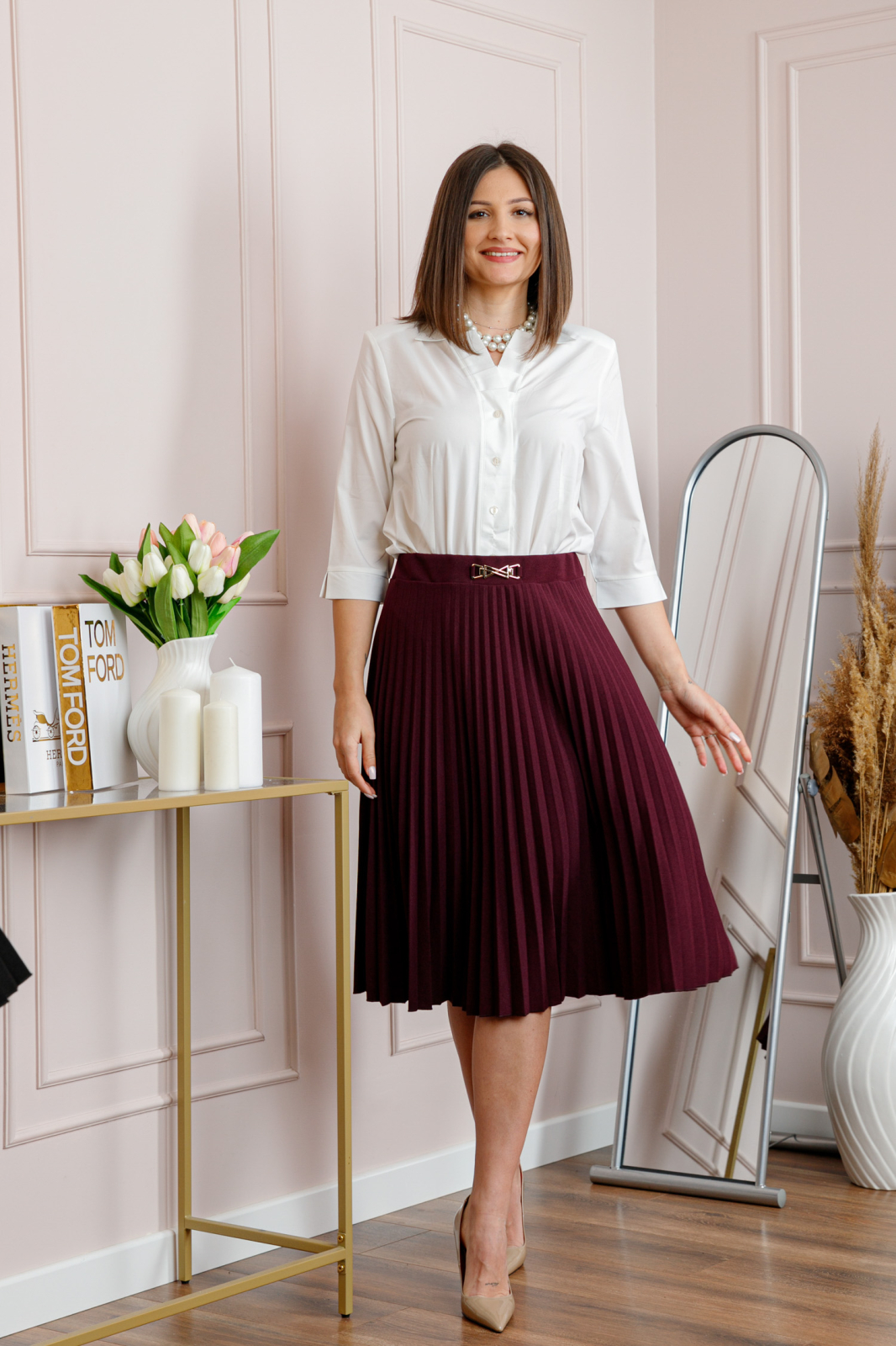 • Croi: plisat, lungime midi