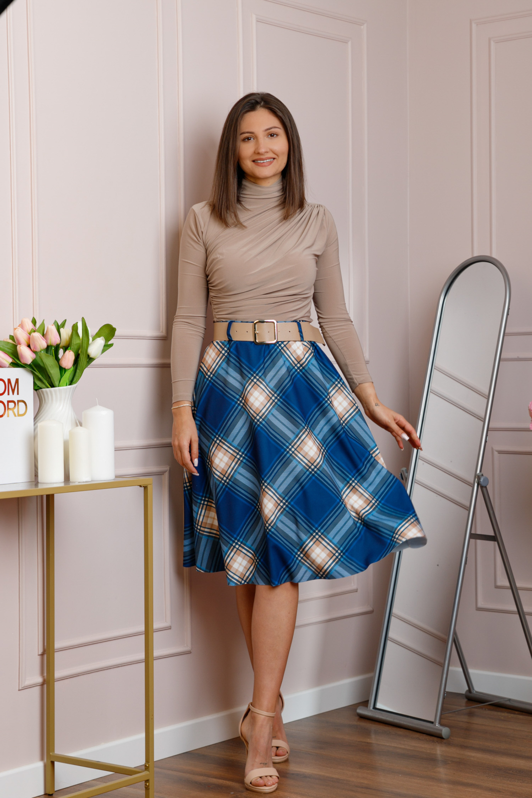 Fusta Monroe imbina eleganta clasica a imprimeului in carouri cu un croi modern si feminin, perfect pentru tinute rafinate si usor de integrat in garderoba de zi cu zi.