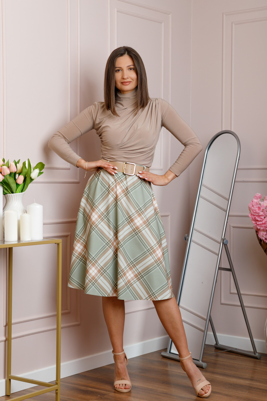 Fusta Monroe imbina eleganta clasica a imprimeului in carouri cu un croi modern si feminin, perfect pentru tinute rafinate si usor de integrat in garderoba de zi cu zi.
