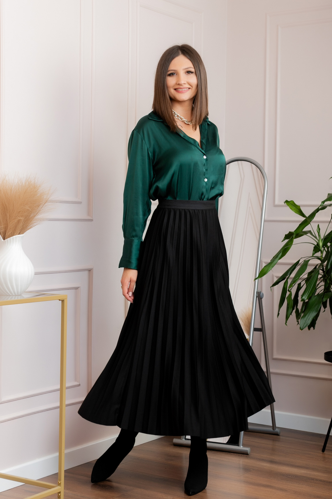Fusta lunga plisata Jacqueline este o alegere eleganta si feminina, ideala pentru zilele racoroase in care vrei sa imbini confortul cu stilul. Croiul sau lung si fluid, impreuna cu pliseurile fine, ofera o tinuta sofisticata, usor de purtat atat la birou, cat si la evenimente de zi.