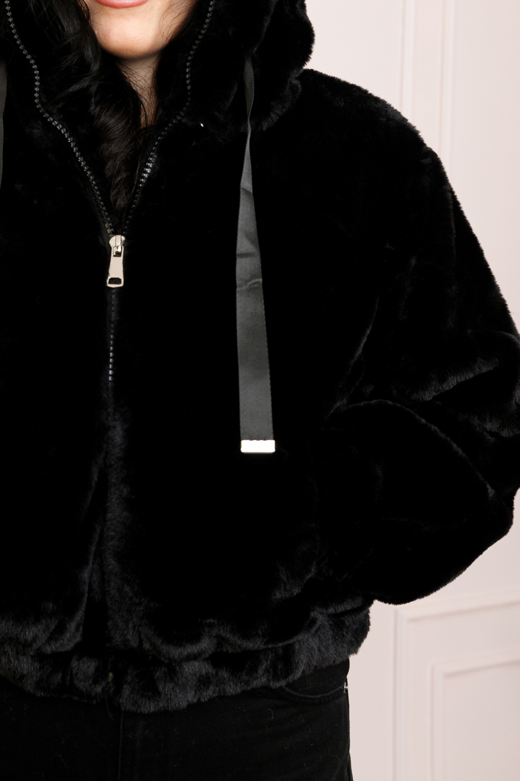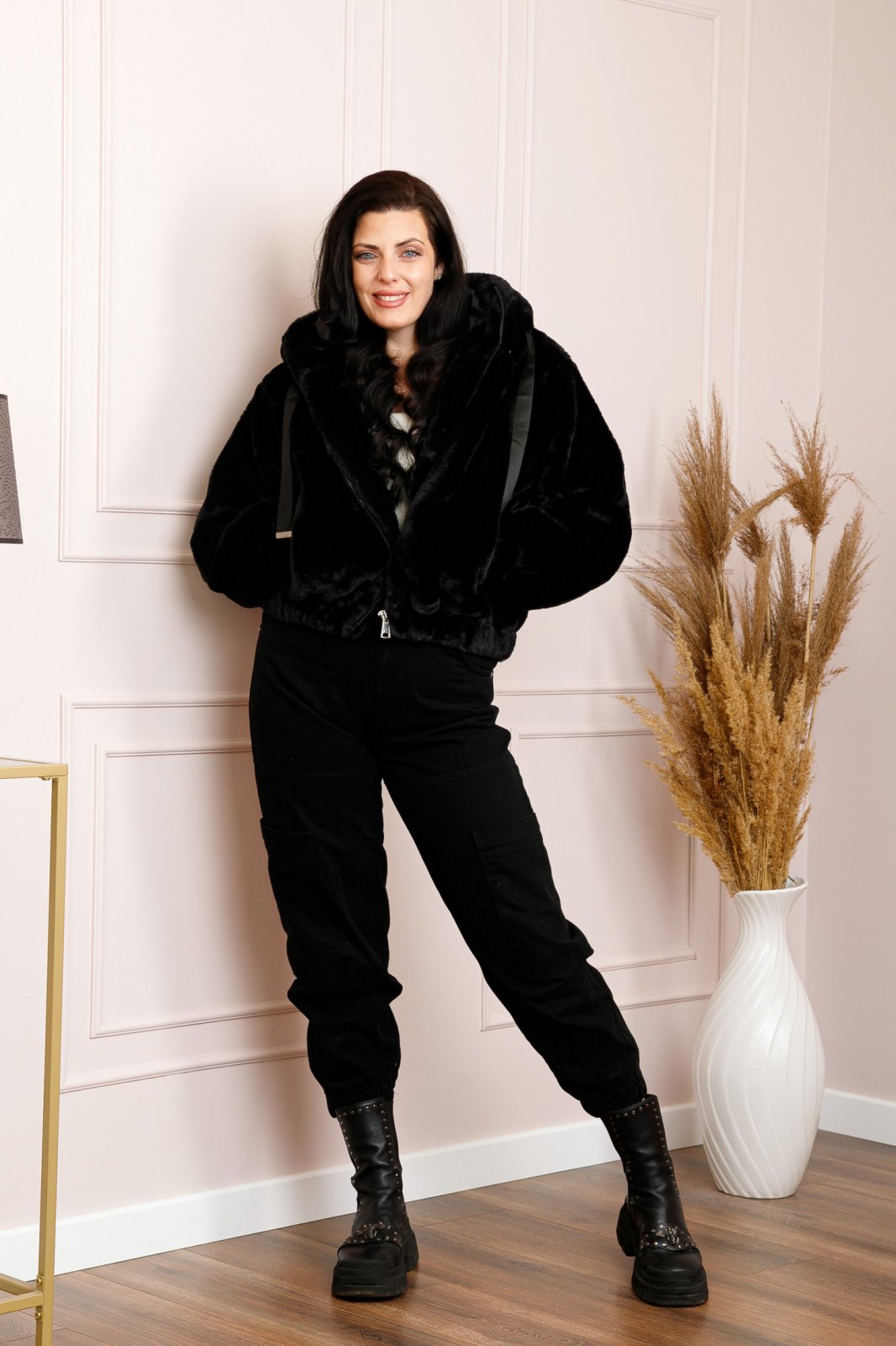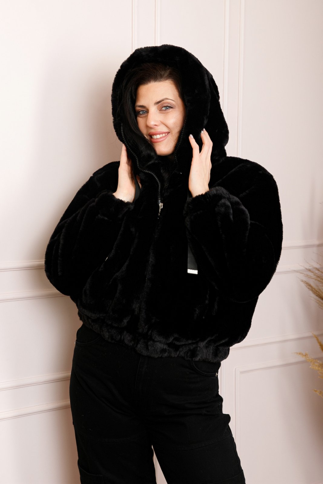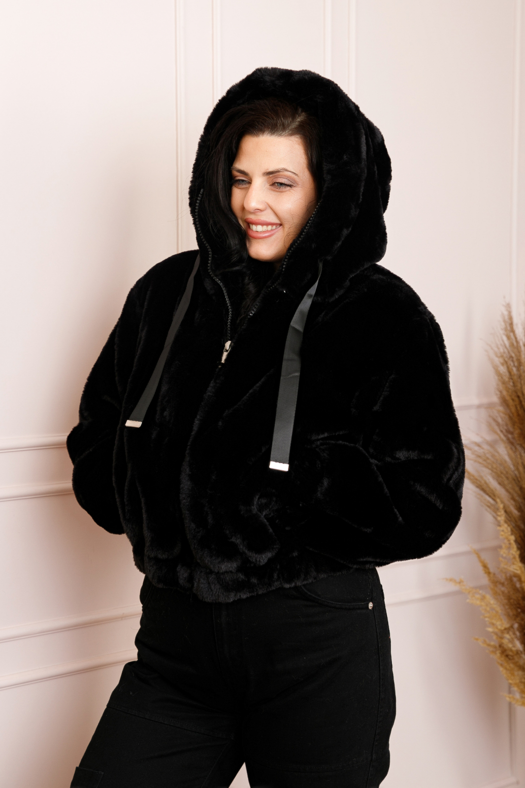 Geaca din blanita sintetica Ariana cu gluga si fermoar - Negru
