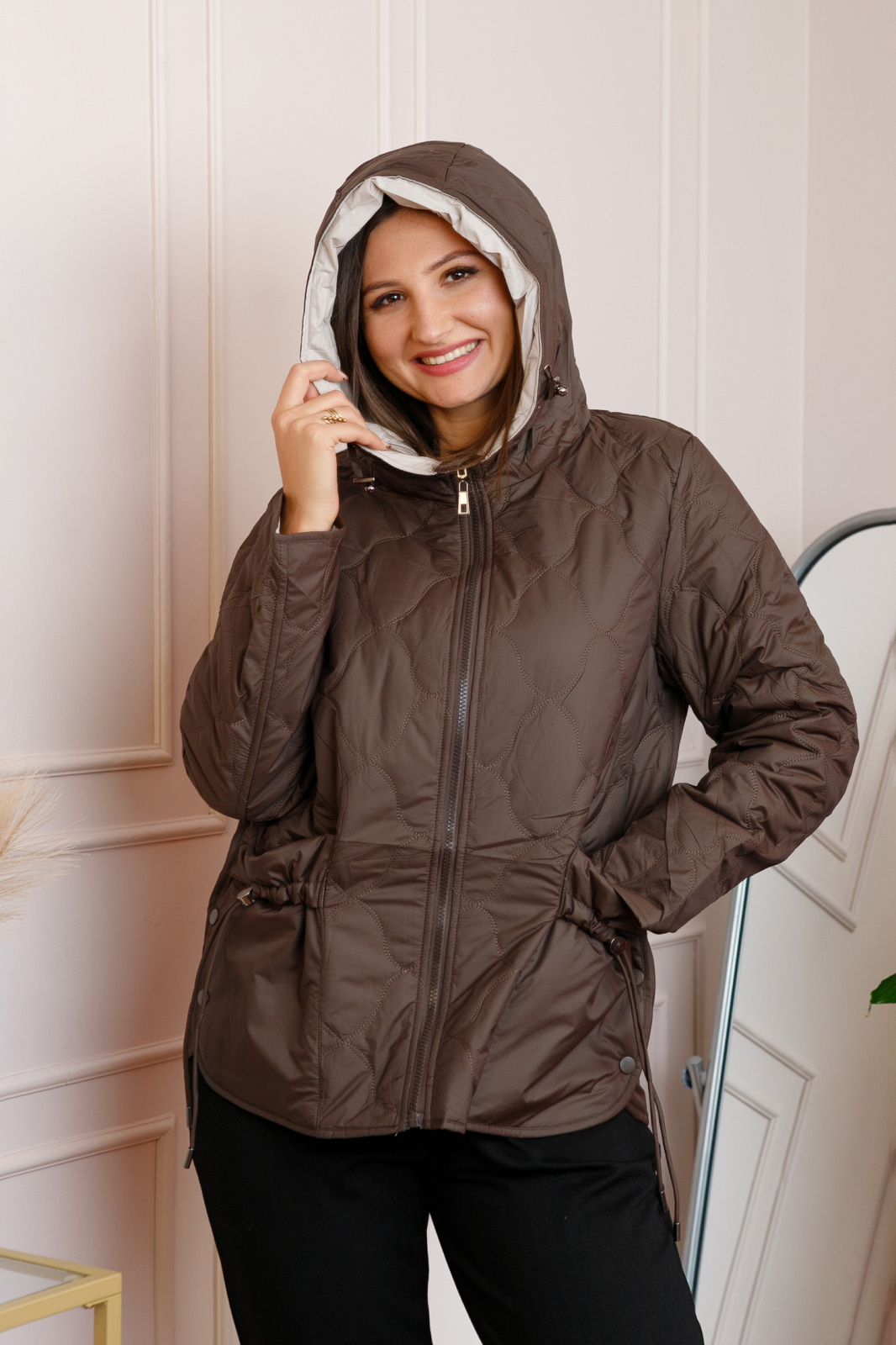 Geaca dama Dakota cu 2 fete si gluga ajustabila - Maro cu ivoire