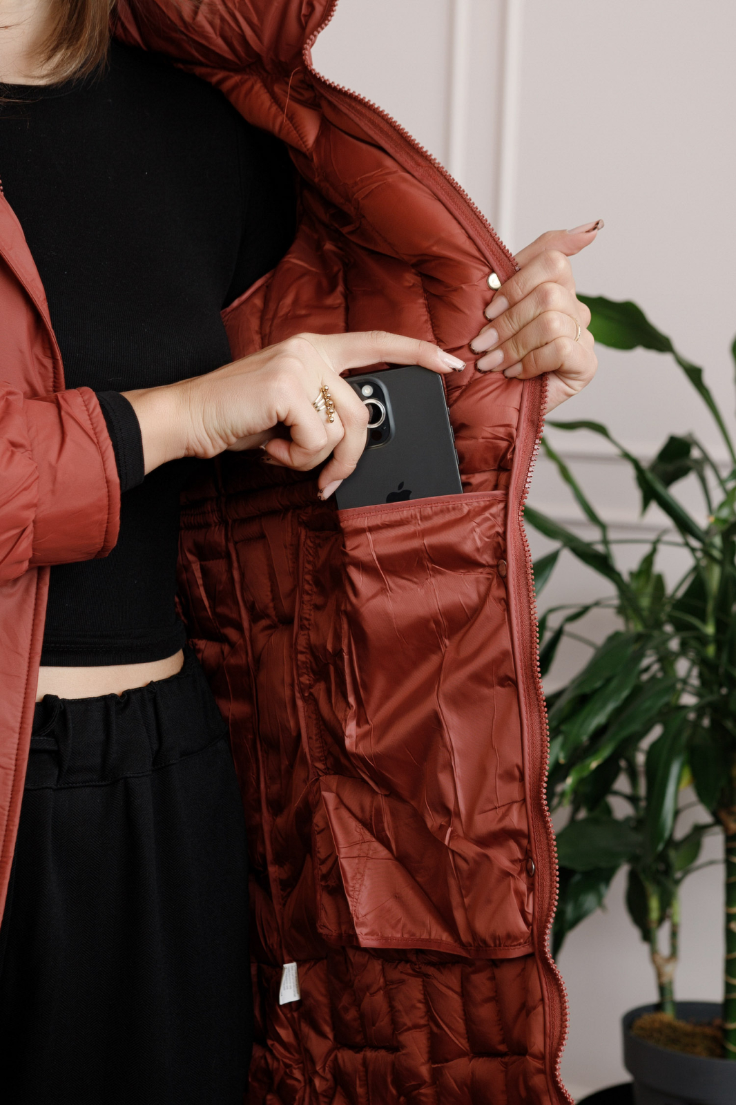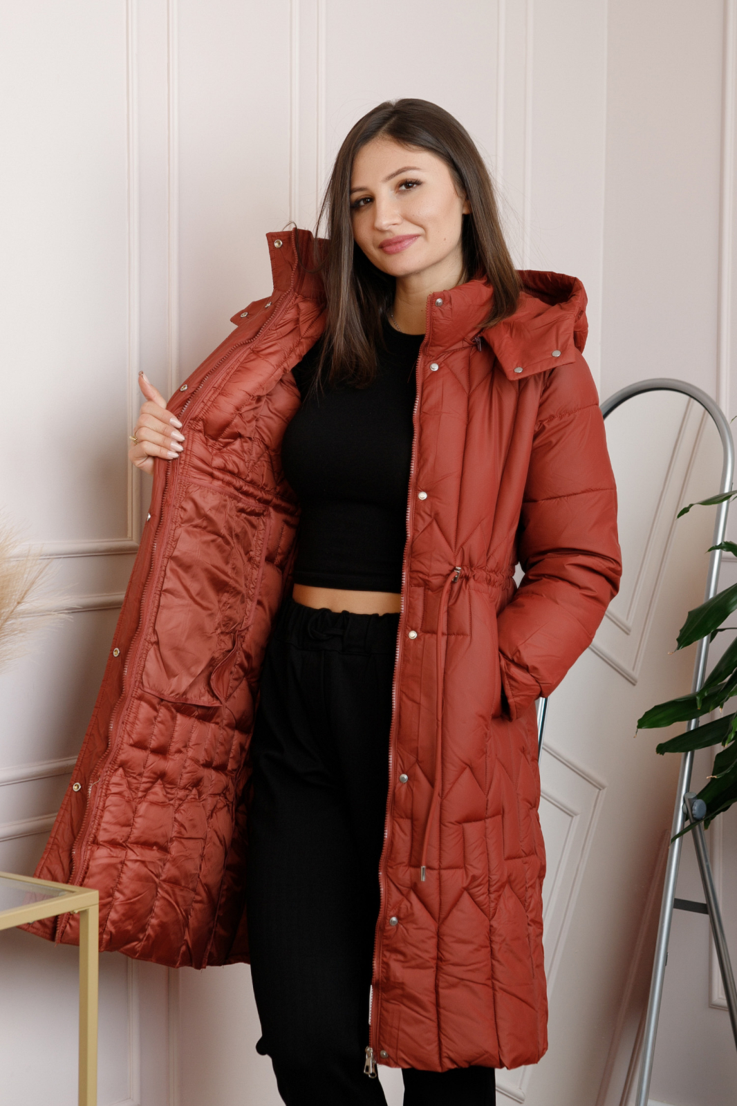Geaca Chelsea este conceputa pentru a oferi caldura, confort si functionalitate in zilele friguroase de iarna. Croiul lung si snurul reglabil in talie pun in valoare silueta, iar gluga detasabila ofera protectie suplimentara. Practica si moderna, geaca dispune nu doar de buzunare laterale, ci si de un buzunar interior incapator, ideal pentru telefon sau alte obiecte personale, astfel incat sa ai tot ce-ti trebuie la indemana.