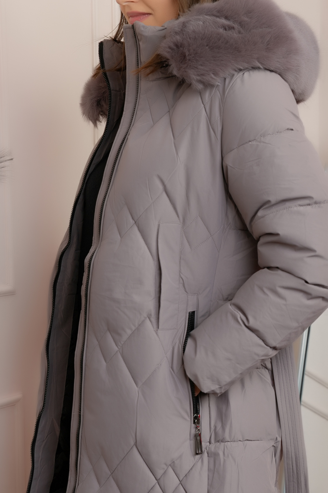 Geaca Valerie este alegerea perfecta pentru un look feminin si confortabil in sezonul rece. Realizata din fas matlasat, aceasta geaca lunga ofera caldura si stil in acelasi timp. Gluga detasabila cu blanita sintetica adauga un plus de eleganta, iar cordonul in talie permite ajustarea pentru o silueta definita. Inchiderea cu fermoar si buzunarele laterale functionale cu fermoar sporesc aspectul practic si modern al gecii.