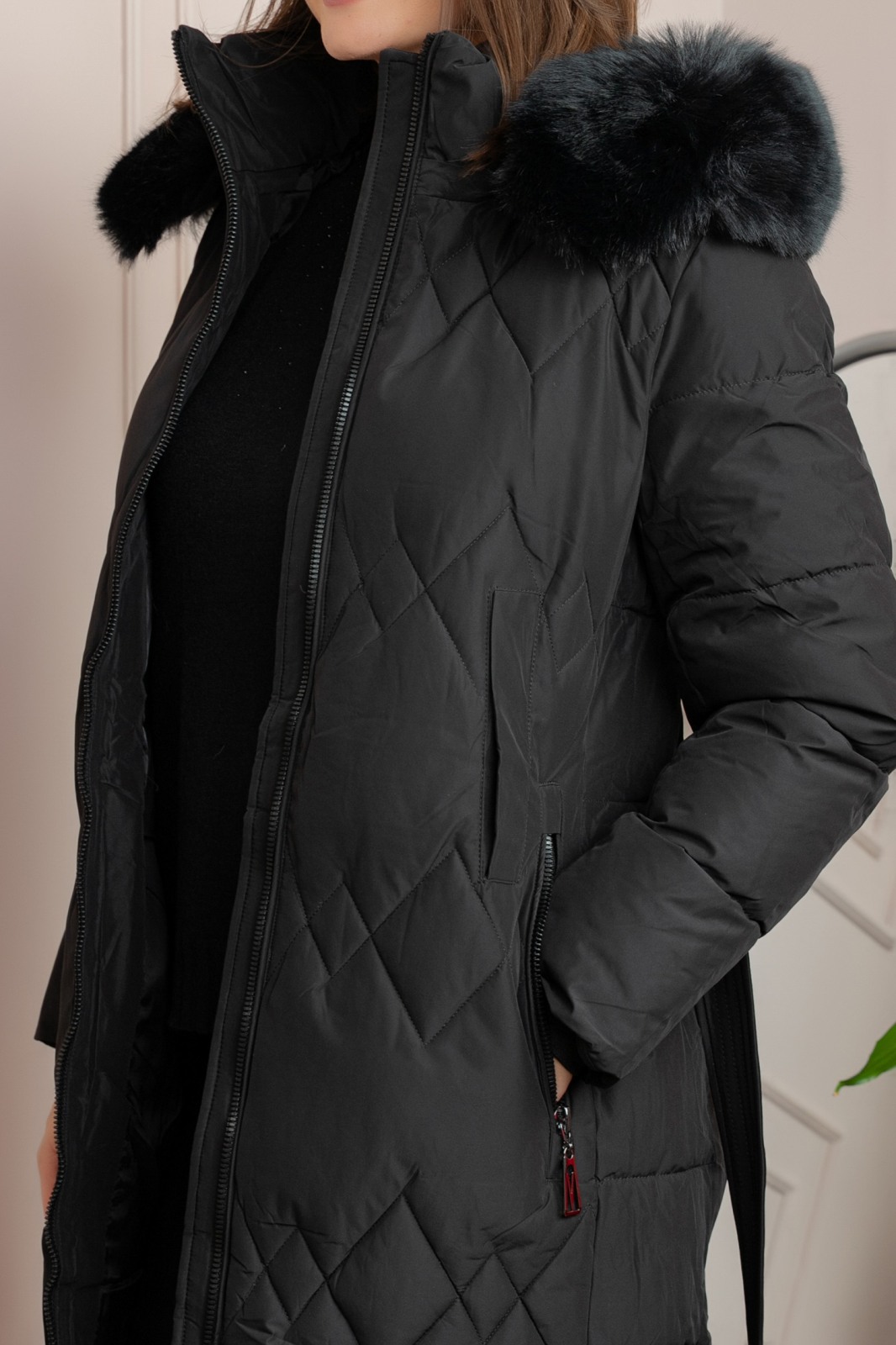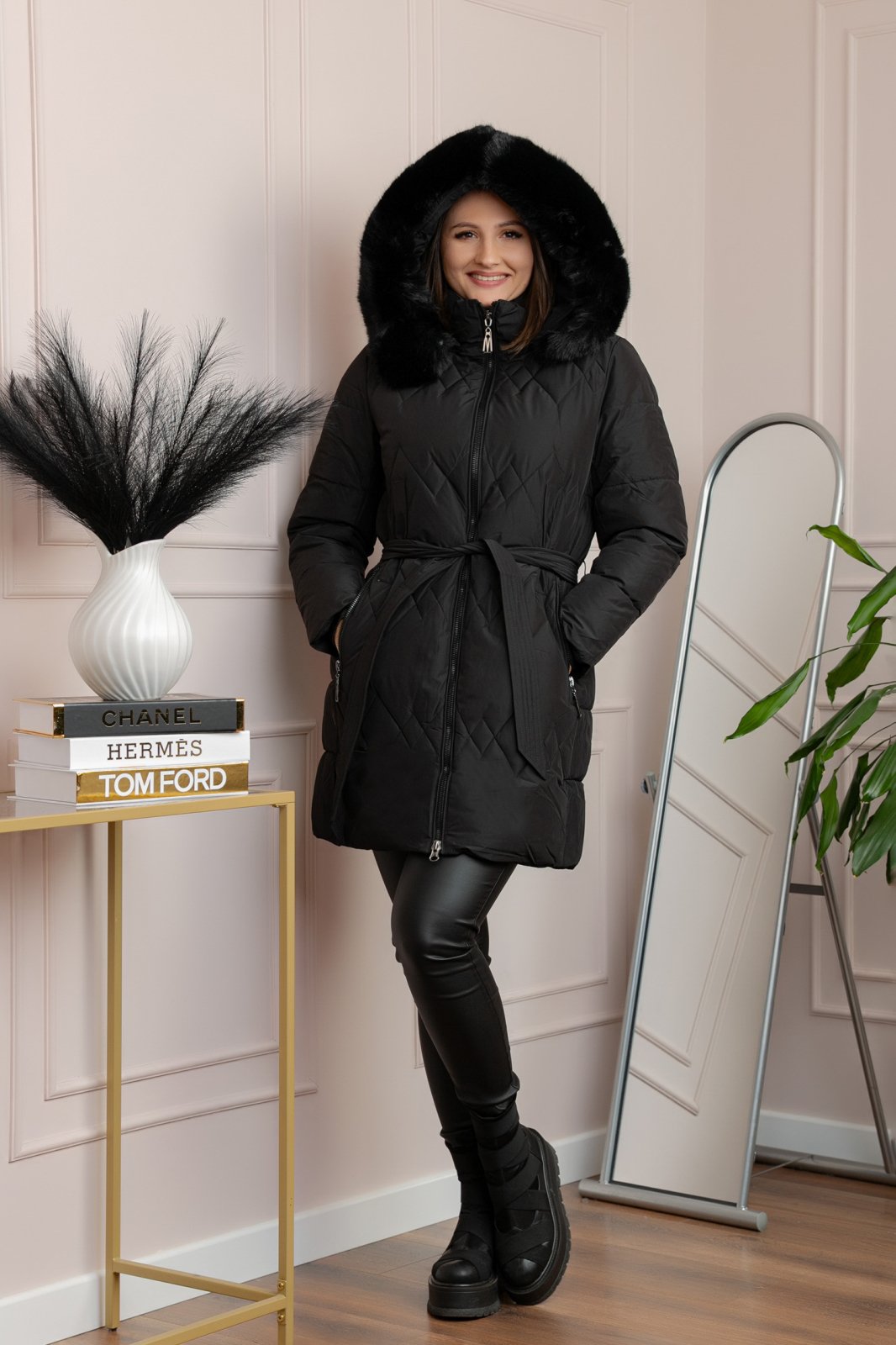 Geaca Valerie este alegerea perfecta pentru un look feminin si confortabil in sezonul rece. Realizata din fas matlasat, aceasta geaca lunga ofera caldura si stil in acelasi timp. Gluga detasabila cu blanita sintetica adauga un plus de eleganta, iar cordonul in talie permite ajustarea pentru o silueta definita. Inchiderea cu fermoar si buzunarele laterale functionale cu fermoar sporesc aspectul practic si modern al gecii.
