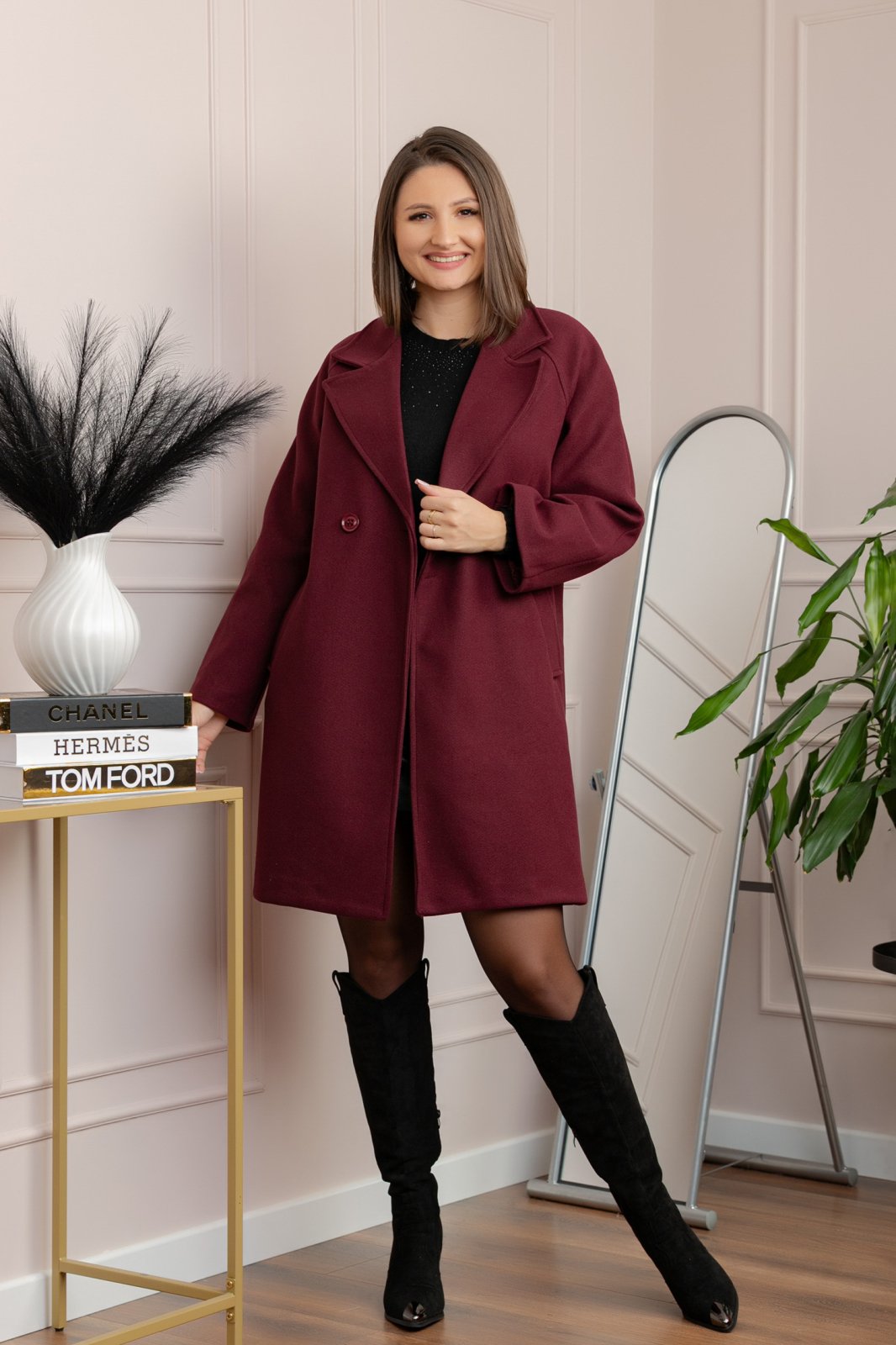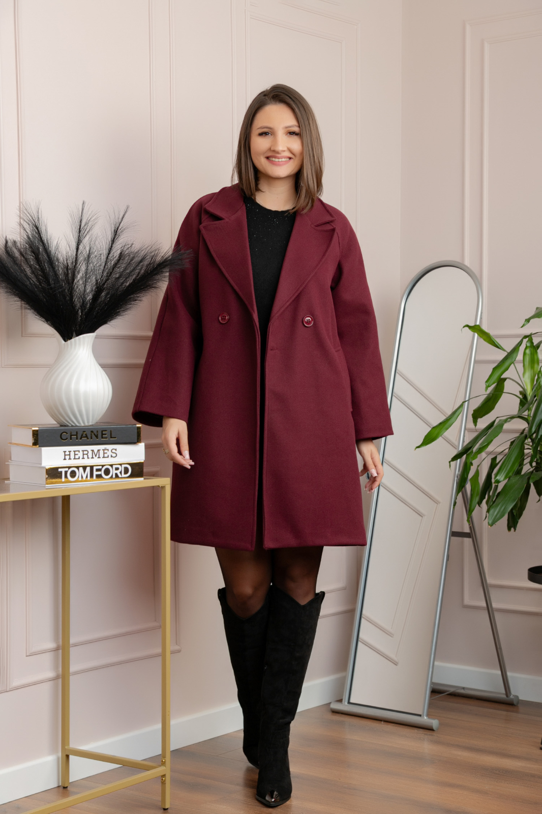 Palton cu croi elegant, rever amplu si inchidere cu nasturi. Realizat din material moale, cu buzunare laterale functionale si aspect rafinat.