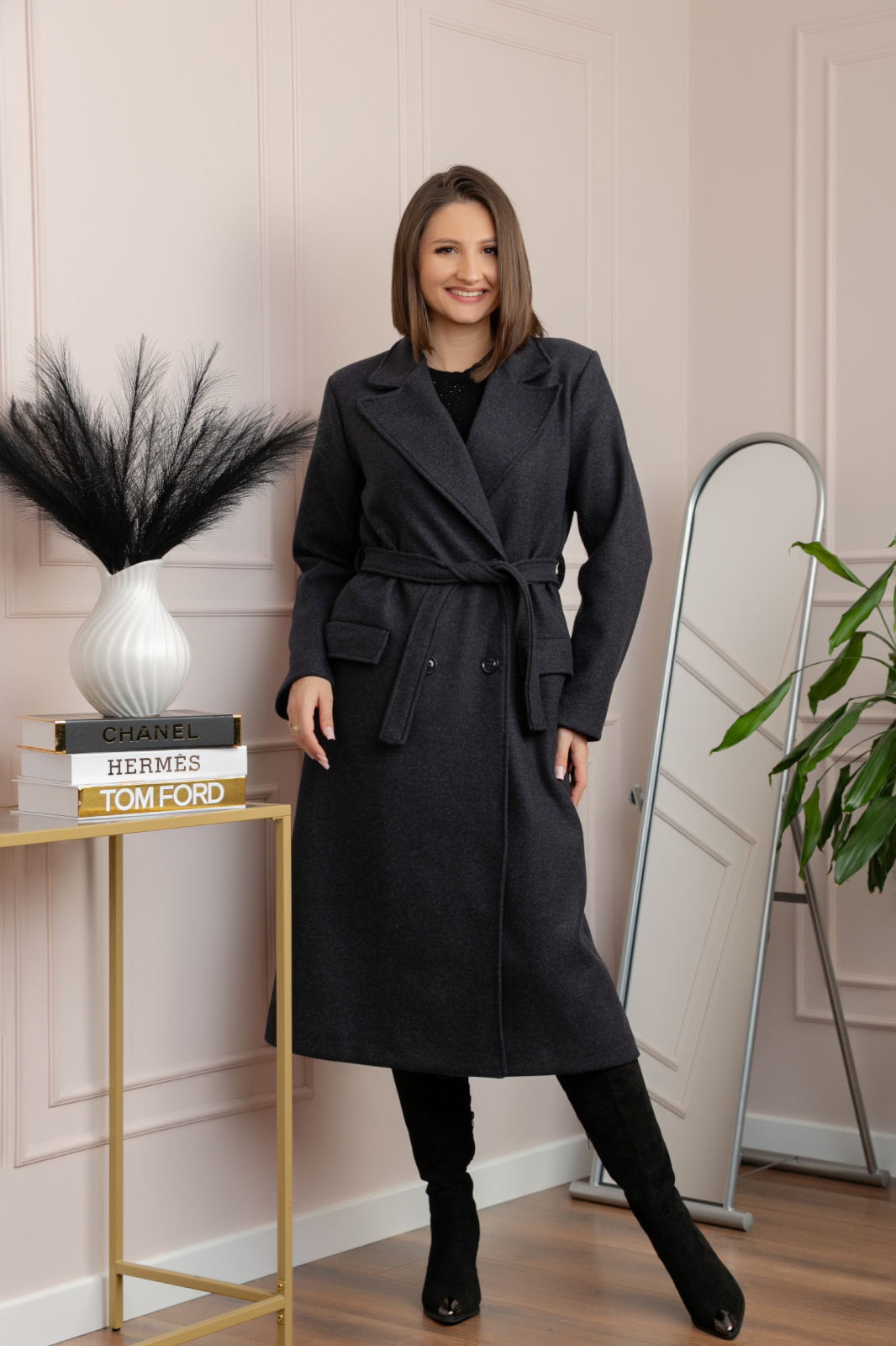 Paltonul Erika este o piesa clasica si eleganta, potrivita pentru zilele reci in care vrei sa pastrezi un look rafinat. Croiul lung si cordonul in talie evidentiaza frumos silueta, iar reverul amplu adauga un plus de stil si sofisticare. Fabricat dintr-o stofa fina de poliester, placuta la atingere, cu continut de viscoza pentru confort sporit, acest palton este perfect atat pentru tinutele office, cat si pentru cele de zi. Buzunarele functionale si inchiderea cu nasturi ii confera un plus de utilitate.