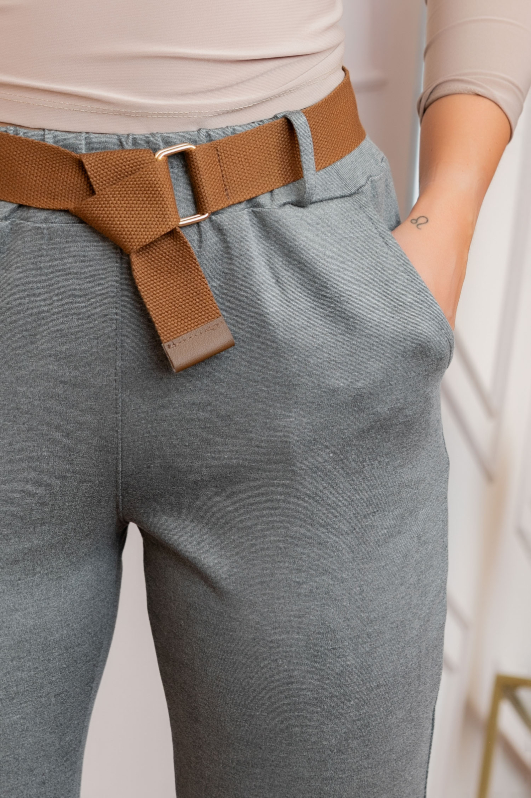 Acesti pantaloni casual sunt perfecti pentru zilele in care confortul si stilul se imbina armonios. Talia elastica asigura o potrivire confortabila, iar cureaua ajustabila in talie ofera posibilitatea de a personaliza tinuta in functie de preferinte. Cu buzunare laterale functionale si o croiala lejera, acesti pantaloni sunt ideali pentru o tinuta casual sau chiar pentru o zi la birou. Pantalonii sunt perfecti pentru a crea un look chic si confortabil, usor de asortat in diverse combinatii.