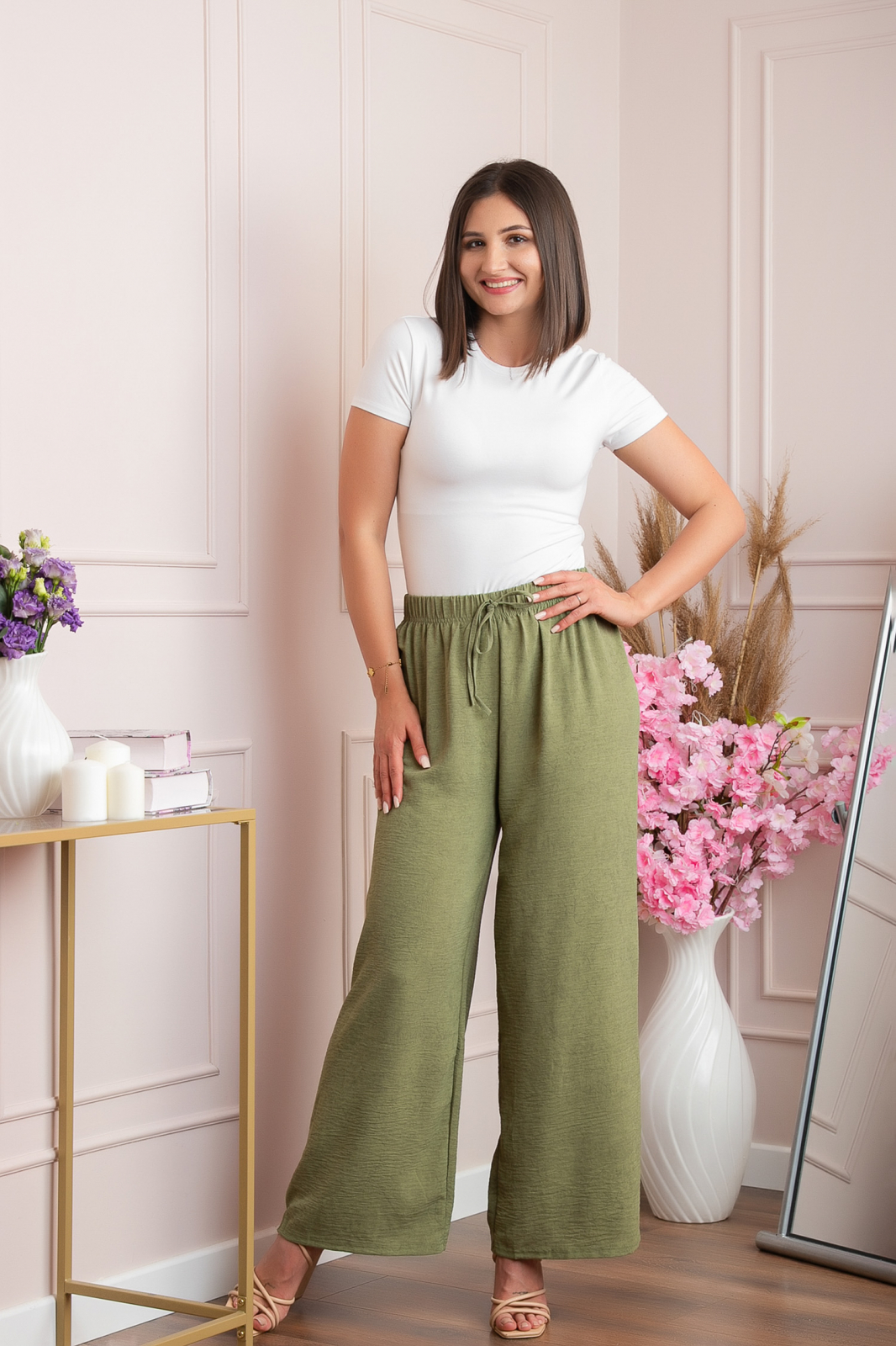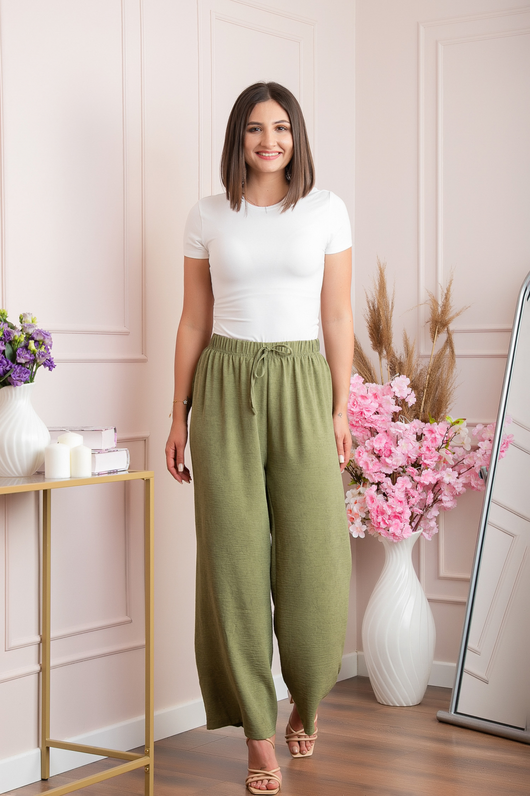 Pantalonii palazzo Carla imbina lejeritatea urbana cu note discrete de rafinament, devenind rapid piesa-cheie din garderoba oricarei femei care cauta pantaloni largi dama confortabili si versatili. Realizati dintr-un material moale si fluid ce cade elegant pe picior, acesti pantaloni largi se remarca prin imprimeul abstract, perfect pentru un look contemporan. Talia inalta cu banda elastica si snur permite ajustarea rapida pe corp, oferind libertate de miscare indiferent ca ii porti la birou, la o iesire in oras sau intr-o calatorie. Croiala wide-leg alungeste silueta, iar lungimea maxi acopera fin glezna, permitand purtarea cu sandale cu toc, platforme sau incaltaminte sport pentru un styling casual. Pantalonii pot fi asortati un tricou simplu, un top mulat sau o camasa alba, fiind o optiune chic pentru tinute office, smart-casual sau de vacanta.