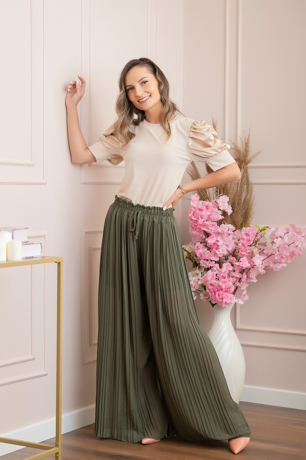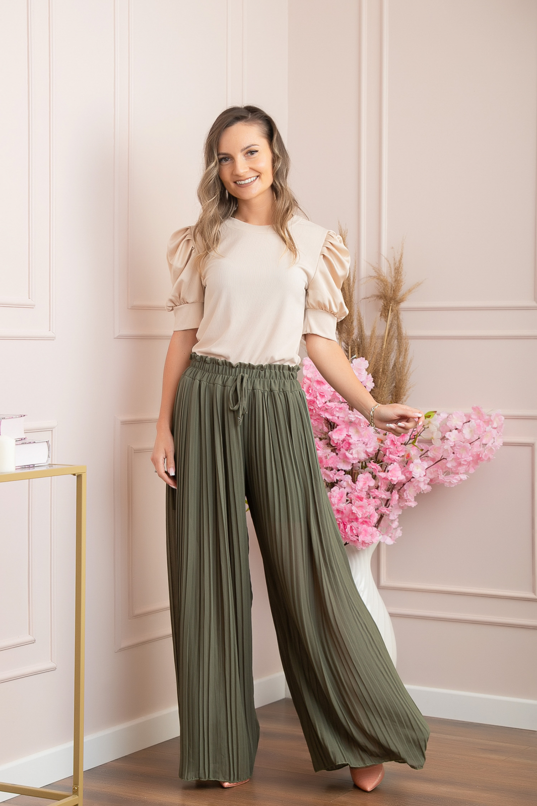Pantalonii plisati Coraline sunt definitia elegantei lejere: confectionati din voal fin, usor si fluid, cu pliuri verticale care alungesc silueta si confera miscare naturala la fiecare pas, acesti pantaloni devin rapid piesa de rezistenta din orice garderoba eleganta. Talia inalta tip paperbag este sustinuta de o banda lata elastica si completata de un snur reglabil, asa ca se adapteaza perfect mai multor siluete, accentuand in acelasi timp zona taliei. Croiala ampla, de inspiratie fusta-pantalon, lasa pielea sa respire si ofera confort pe parcursul intregii zile, fie ca ii porti la birou, la o iesire de weekend sau la un eveniment special. Materialul vaporos nu se sifoneaza usor, se usuca rapid dupa spalare si mentine culorile vii sezon dupa sezon. Lungimea maxi acopera discret incaltamintea, permitand asortarea atat cu pantofi cu toc, cat si cu sandale plate. Aceasta piesa versatila imbina confortul cu stilul rafinat, completeaza tinutele de primavara, vara ori toamna si este ideala pentru femeia moderna care cauta un echilibru intre practic si chic.