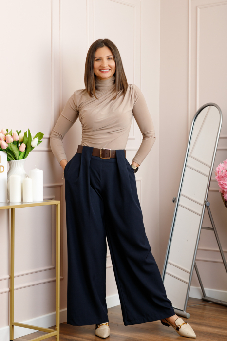 Pantalonii Judith sunt alegerea ideala pentru tinute elegante si moderne, oferind un echilibru perfect intre stil si confort. Croiul larg, de tip wide leg, alungeste vizual silueta si creeaza o linie fluida, sofisticata, potrivita atat pentru tinute office, cat si pentru aparitii casual rafinate.