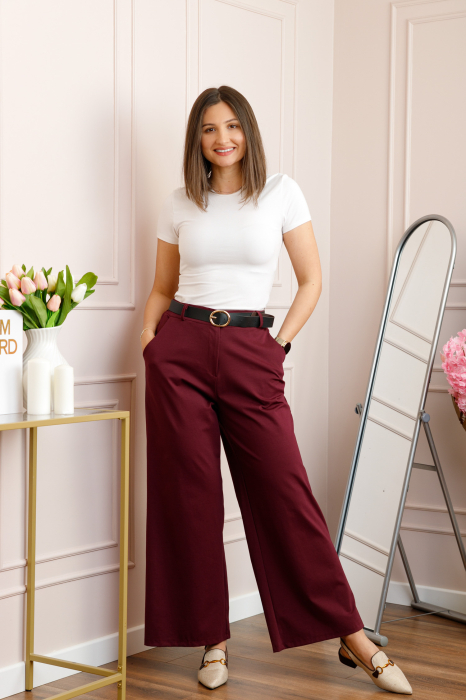 Pantalonii Molly sunt alegerea ideala pentru un look modern si relaxat, combinand confortul cu o linie eleganta si fluida. Croiala evazata alungeste vizual silueta si ofera un efect lejer in miscare, fiind potrivita atat pentru tinute casual, cat si pentru aparitii smart-casual.