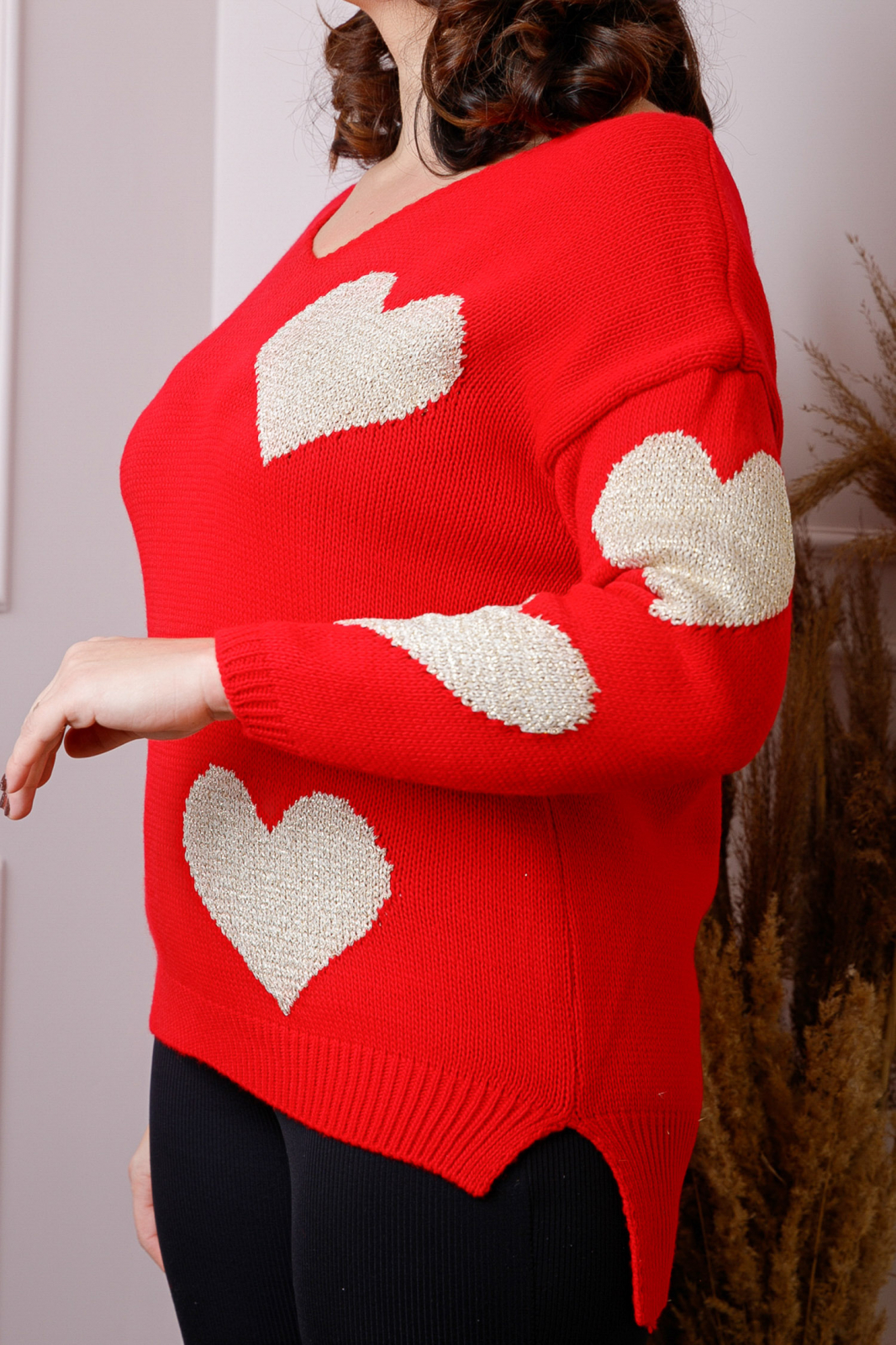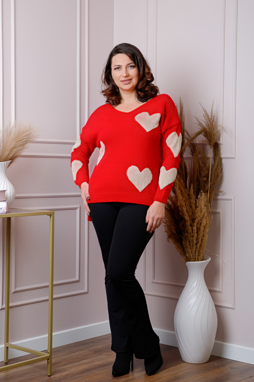 Acest pulover casual este alegerea perfecta pentru zilele racoroase, aducand un plus de confort si stil garderobei tale. Realizat dintr-un material tricotat de inalta calitate, acest pulover rosu impresioneaza prin detaliile delicate cu inimioare, perfecte pentru a adauga o nota de feminitate si eleganta tinutei tale.