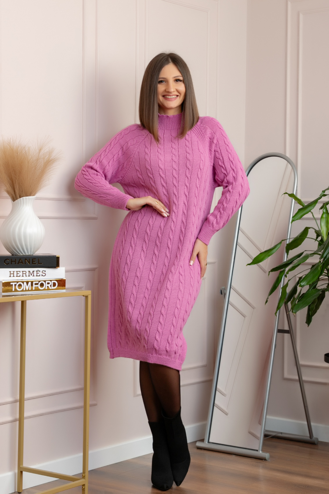 Pulover tricotat tip rochie Rachel cu maneci raglan - Roz