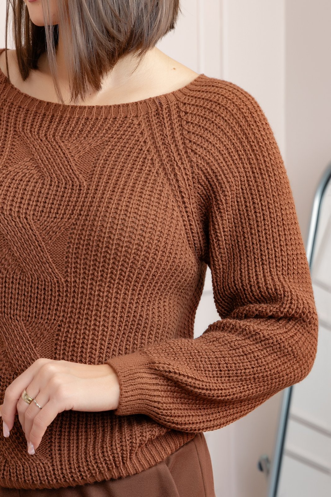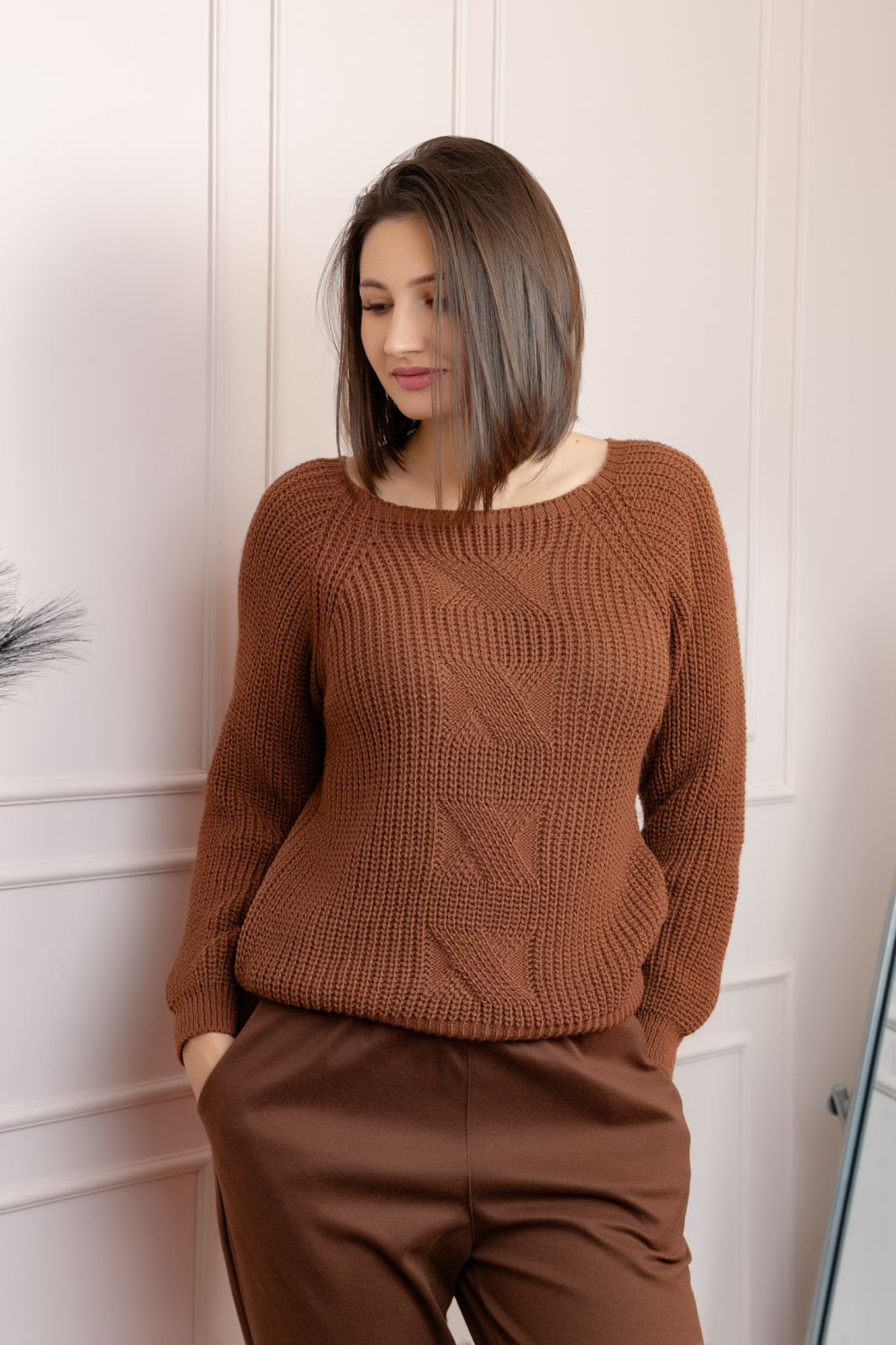 Pulover gros Sydney din tricot moale cu model impletit - Maro