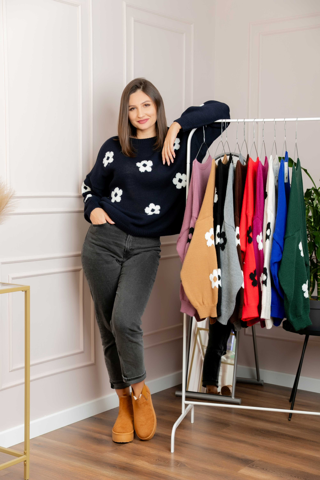 Puloverul April este alegerea perfecta pentru zilele racoroase, cand vrei sa imbini confortul cu un aer jucaus si feminin. Realizat din tricot, acest model se remarca prin croiul lejer si imprimeul floral contrastant, care aduce un plus de prospetime tinutei. Poate fi purtat cu jeansi, fuste sau pantaloni casual pentru un look relaxat, dar rafinat.