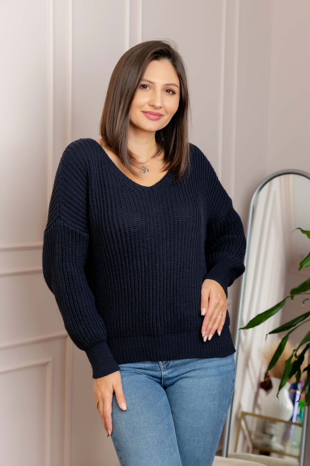 Puloverul Amy imbina confortul termic cu un design modern si minimalist. Confectionat din tricot gros, moale si placut la atingere, are o croiala lejera care ofera libertate de miscare si un aspect relaxat. Decolteul in V adauga o nota feminina, iar culoarea se potriveste perfect cu jeans, fuste sau pantaloni casual.
