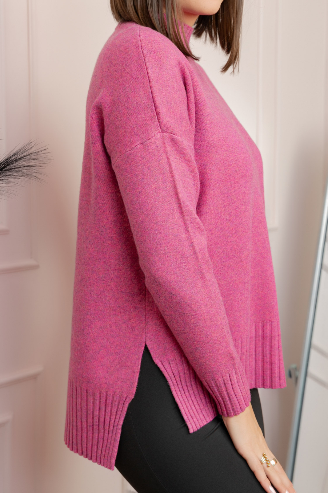 Puloverul Julia este alegerea ideala pentru zilele racoroase, datorita tricotului moale si croiului lejer, care ofera libertate de miscare si confort sporit. Gulerul inalt adauga o nota eleganta, iar despicaturile laterale si tivul lat creeaza un efect modern, usor asimetric. Este o piesa versatila, care se potriveste atat cu jeansi, cat si cu colanti sau pantaloni conici.
