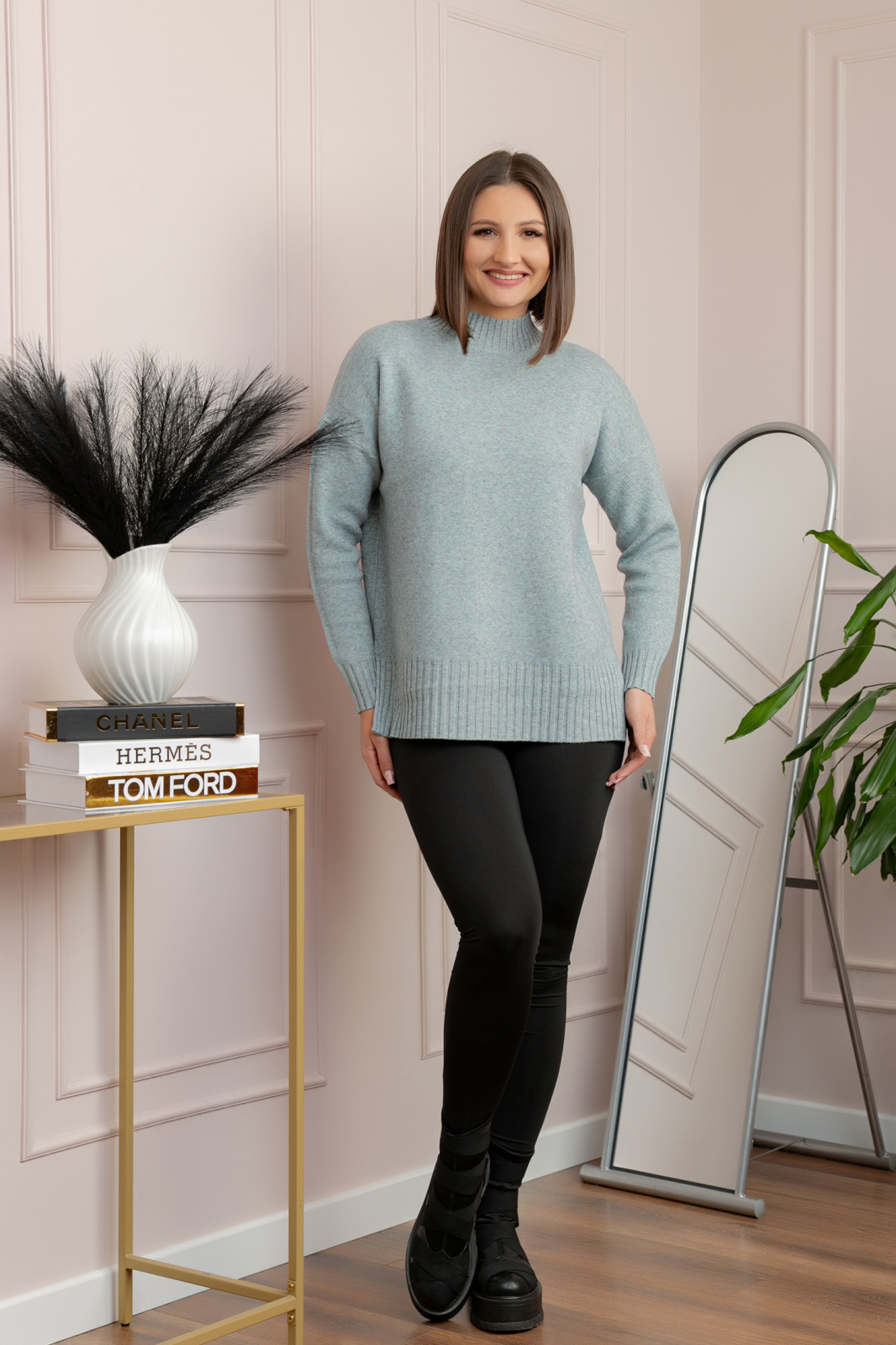 Puloverul Julia este alegerea ideala pentru zilele racoroase, datorita tricotului moale si croiului lejer, care ofera libertate de miscare si confort sporit. Gulerul inalt adauga o nota eleganta, iar despicaturile laterale si tivul lat creeaza un efect modern, usor asimetric. Este o piesa versatila, care se potriveste atat cu jeansi, cat si cu colanti sau pantaloni conici.