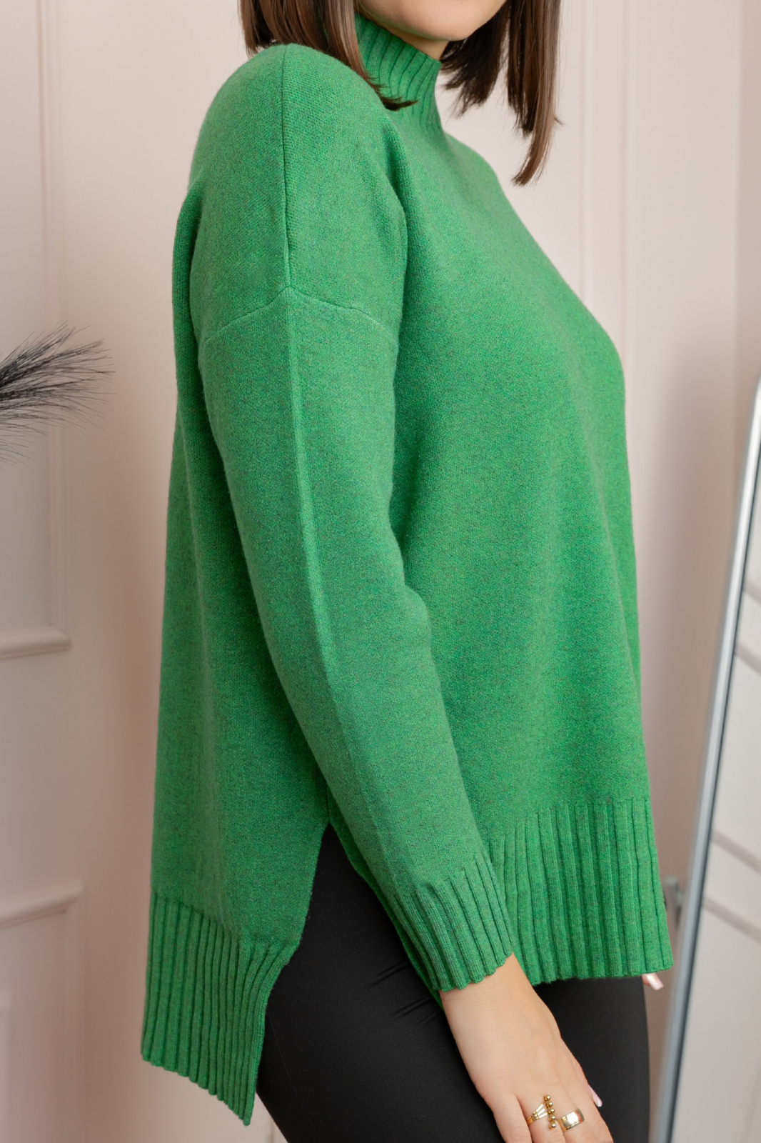Puloverul Julia este alegerea ideala pentru zilele racoroase, datorita tricotului moale si croiului lejer, care ofera libertate de miscare si confort sporit. Gulerul inalt adauga o nota eleganta, iar despicaturile laterale si tivul lat creeaza un efect modern, usor asimetric. Este o piesa versatila, care se potriveste atat cu jeansi, cat si cu colanti sau pantaloni conici.