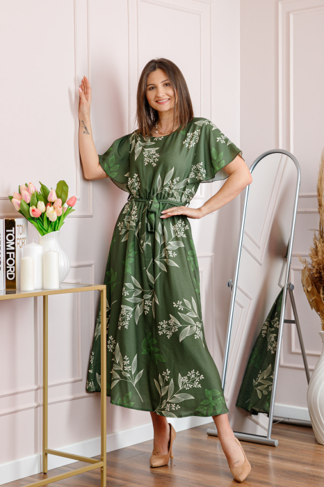 Rochia Artemis imbina eleganta cu un design modern, fiind alegerea ideala pentru tinute feminine, rafinate si usor de purtat. Contrastul dintre kaki si ivoire, in combinatie cu imprimeul floral, creeaza un efect vizual deosebit si actual.