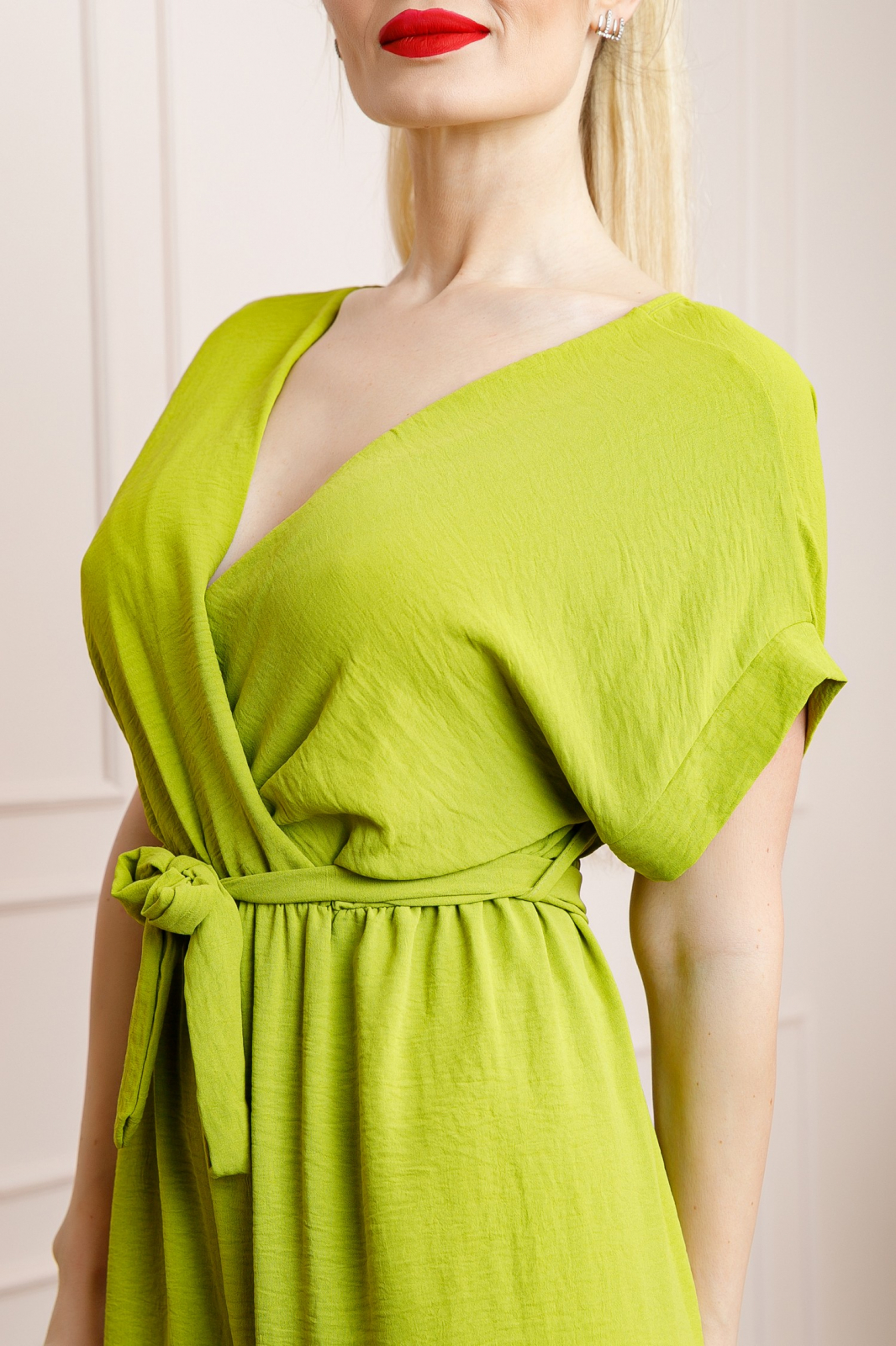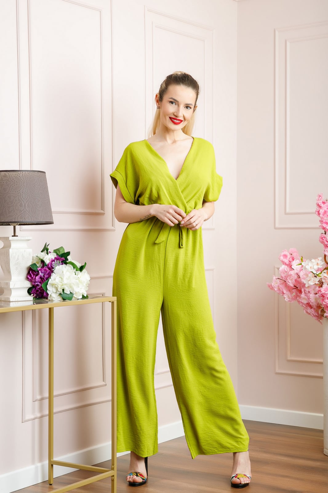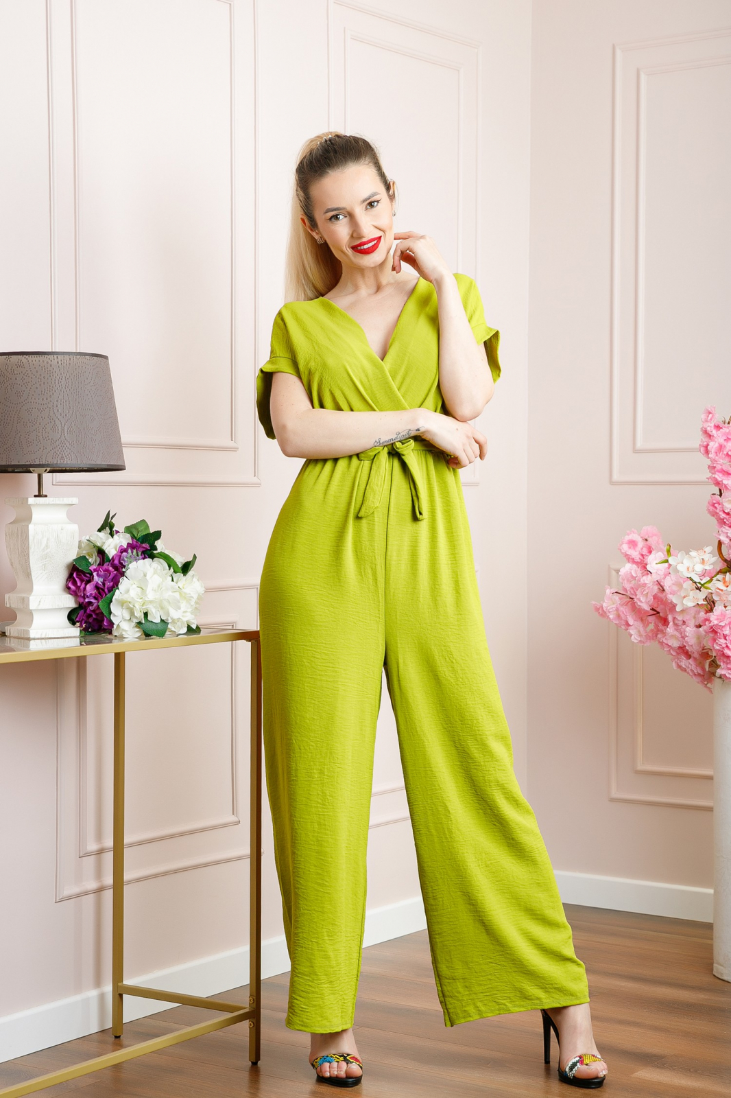 Salopeta eleganta si vaporoasa, cu croi lejer. Are maneci scurte, cordon in talie si este petrecuta la bust. Acest model de salopeta este confectionat dintr-un material lejer care lasa pielea sa respire. Cordonul din talie complimenteaza silueta tip clepsidra, insa si silueta tip dreptunghi este frumos evidentiata de acest model de salopeta eleganta.
